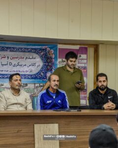 سپس حمید رجبینیا مدرس دوره و رئیس کمیته آموزش هیات فوتبال گیلان، ضمن تشریح شرایط و الزامات کلاس، نکاتی پیرامون پرورش مربیان توانمند و نقش آنان در توسعه فوتبال پایه بیان کرد. در ادامه، محمدرضا شیدفر مدیر دوره نیز بر ضرورت رعایت قوانین و نظم آموزشی توسط شرکتکنندگان تأکید داشت. همچنین محسن مژدهی رئیس کمیته آموزش هیات فوتبال شهرستان رشت، درباره برنامههای آموزشی و جایگاه کلاسهای مربیگری در پیشرفت فوتبال سخن گفت.