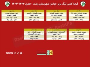 مسابقات لیگ برتر جوانان شهرستان رشت از شنبه ، نوزدهم آبان ماه آغاز خواهد شد.