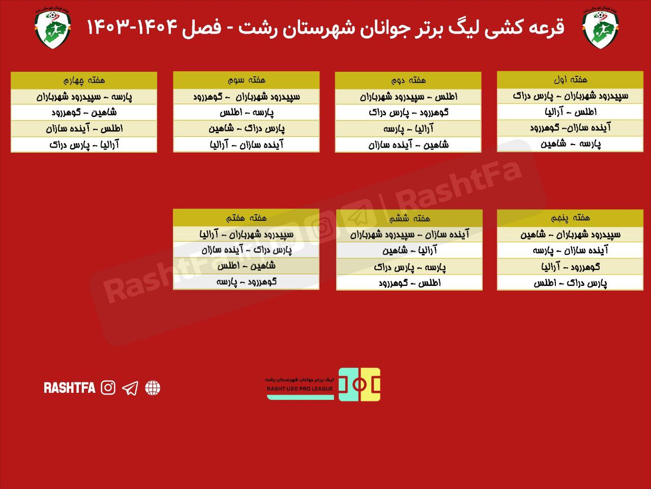 مسابقات لیگ برتر جوانان شهرستان رشت از شنبه ، نوزدهم آبان ماه آغاز خواهد شد.