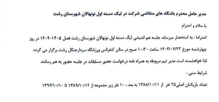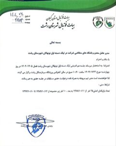 گفتنی است، مسابقات لیگ دسته اول نونهالان شهرستان رشت همانند سایر رقابتهای رسمی، در بستر سامانه جامع نقل و انتقالات هیات فوتبال شهرستان رشت برگزار خواهد شد.