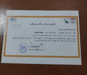 امیررضا وهاب پور توسط هیات فوتبال رشت ۲۳ آذر ۱۴۰۳ نام:امیررضانام خانوادگی:وهاب پورتاریخ تولد:۱۳۸۲/۱۰/۰۲کد ملی:۲۵۸۱۵۱۰۴۸۱