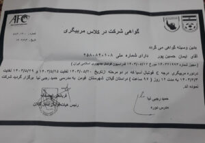 ایمان حسین پور توسط هیات فوتبال رشت ۱۹ آبان ۱۴۰۳ نام:ایماننام خانوادگی:حسین پورتاریخ تولد:۱۳۷۴/۰۲/۰۸کد ملی:۲۵۸۰۸۲۰۱۰۸