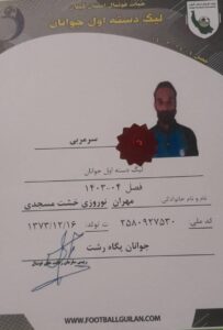 مهران نوروزی توسط هیات فوتبال رشت ۴ فروردین ۱۴۰۴ نام:مهراننام خانوادگی:نوروزیتاریخ تولد:۱۳۷۳/۱۲/۱۶کد ملی:۲۵۸۰۹۲۷۵۳۰