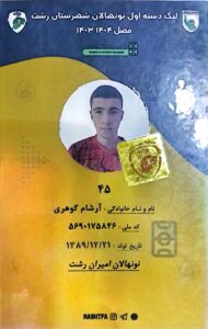 آرشام گوهری توسط امیران رشت ۲۷ شهریور ۱۴۰۴ انتخاب۱۴۰۴-۱۴۰۵ نمای کلی آمار نام:آرشامنام خانوادگی:گوهریمدت قرارداد:۱ فصلتاریخ تولد:۱۳۸۹/۱۲/۲۱کد ملی:۵۶۹۰۱۷۵۸۶۴نام تیم:امیرانشماره پیراهن:۴۵ آرشام گوهری بازی انجام شد ۰ گل ۰ کارت زرد ۰ کارت قرمز ۰