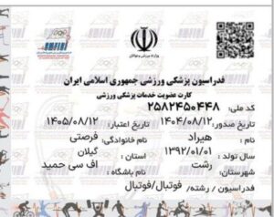 هیراد فرصتی توسط مدرسه فوتبال حمید رشت ۱۵ آبان ۱۴۰۴ انتخاب۱۴۰۴-۱۴۰۵ نمای کلی آمار نام:هیرادنام خانوادگی:فرصتیمدت قرارداد:۱ فصلتاریخ تولد:۱۳۹۲/۰۷/۲۲کد ملی:۲۵۸۲۴۵۰۴۴۸بازیکن آزاد:بلهنام تیم:اف سی حمیدشماره پیراهن:۶۸توضیحات نقص مدارک:نداشتن عکس بازی انجام شد ۰ کارت زرد ۰ کارت قرمز ۰ گل ۰